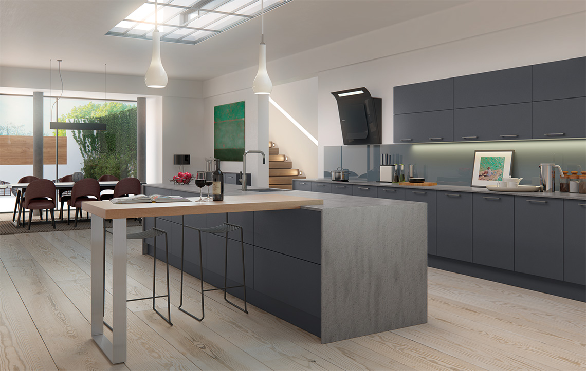 Imola Anthracite matt combines the strong lines and bold aesthetic with a soft matt finish, giving the room that striking look and relaxing feel.