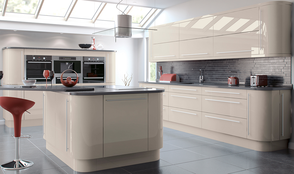 The use of pan drawers and curved doors provides a clean, sleek and exclusive look.